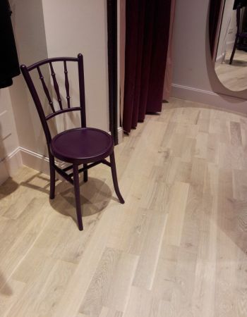 Tienda de moda en la Calle Regalado, Agued&Co. Pavimento de madera de roble teñido de blanco